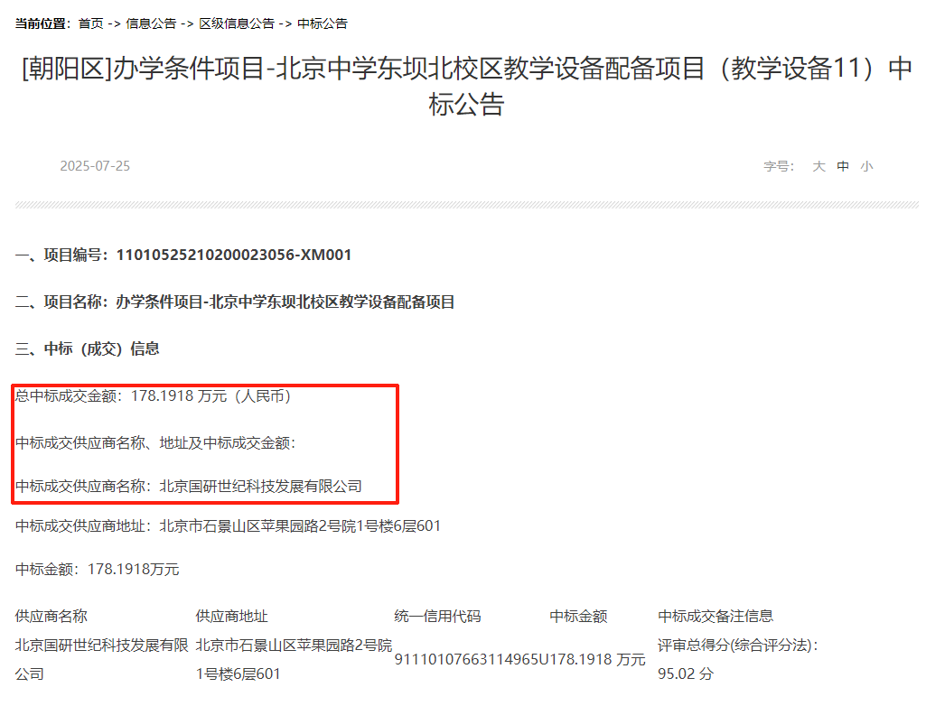 > 辦學(xué)條件項目-北京中學(xué)東壩北校區(qū)教學(xué)設(shè)備配備項目中標(biāo)