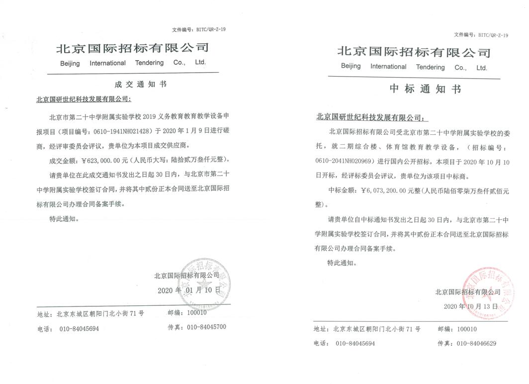 > 北京市第二十中學附屬實驗學?!鄠€項目中標