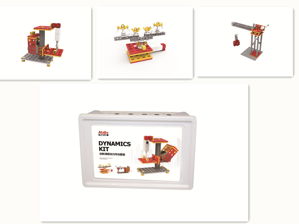 本套裝可以使用學(xué)生通過馬達(dá)驅(qū)動(dòng)設(shè)計(jì)并制作一系列生動(dòng)有趣的項(xiàng)目,探索齒輪與齒輪傳動(dòng)、齒輪與齒條傳動(dòng)、渦輪與蝸桿傳動(dòng)、曲柄連桿傳動(dòng)、滑輪傳動(dòng)、螺旋傳動(dòng)、皮帶傳動(dòng)的工作原理,并對(duì)這些原理的技術(shù)條件、結(jié)構(gòu)因素進(jìn)行觀察與試驗(yàn)探究,體驗(yàn)機(jī)械傳動(dòng)為提高工作效率發(fā)揮的作用,發(fā)展技術(shù)設(shè)計(jì)能力。可以完成手搖發(fā)電機(jī)、吊車、千斤頂、電鋸、張嘴巴的寵物、步行者、電動(dòng)雨刮器、列隊(duì)騎兵、傳送帶等19個(gè)項(xiàng)目。